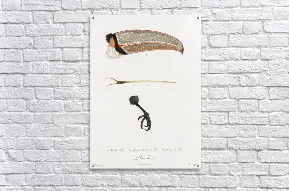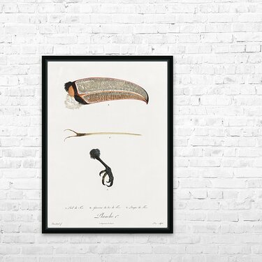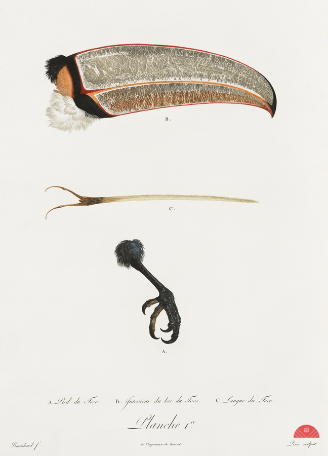 Toco foot beak and tongue from Histoire Naturelle des Oiseaux de Paradis et Des Rolliers 1806 by Jacques Barraband 1767-1809.