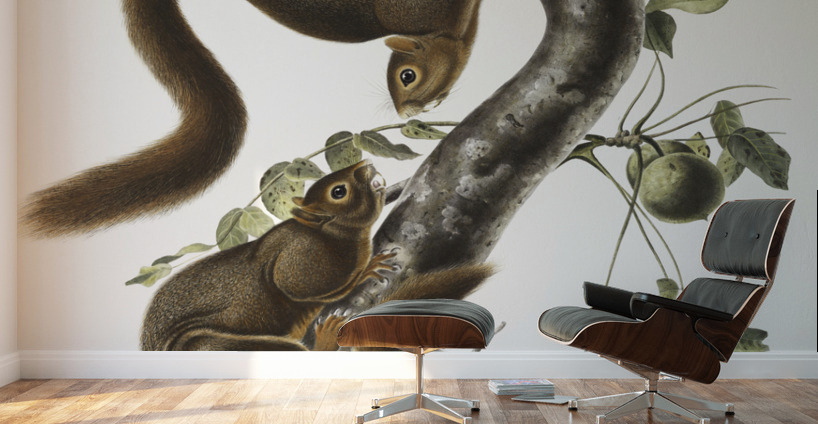 Orange-bellied Squirrel Sciurus sub-auratus from the viviparous quadrupeds of North America 1845 illustrated by John Woodhouse Audubon 1812-1862.