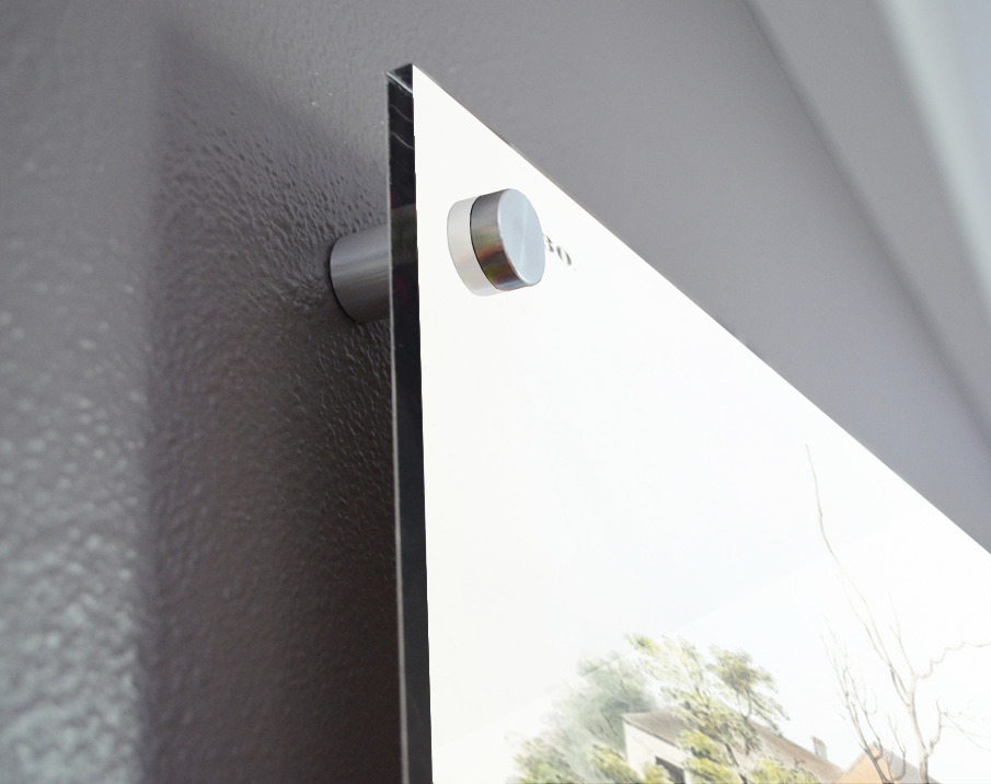 Impression sur acrylique avec entretoises ( cylindres métalliques )