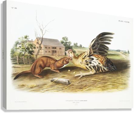 Tawny Weasel Putorius fuscus from the viviparous quadrupeds of North America 1845 illustrated by John Woodhouse Audubon 1812-1862.