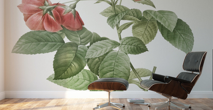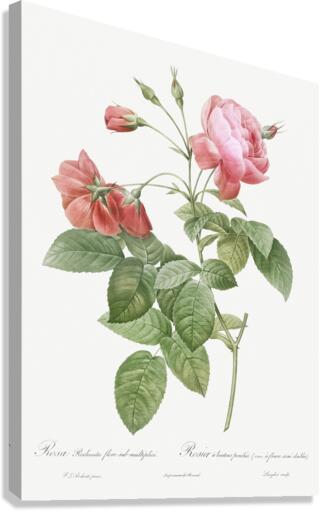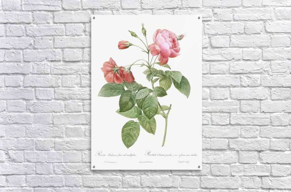Boursault Rose also known as Rosebush with Leaning Buttons with Semi-Double Flowers Rosa reclinata flore sub multiplici from Les Roses 1817–1824 by Pierre-Joseph Redouté.