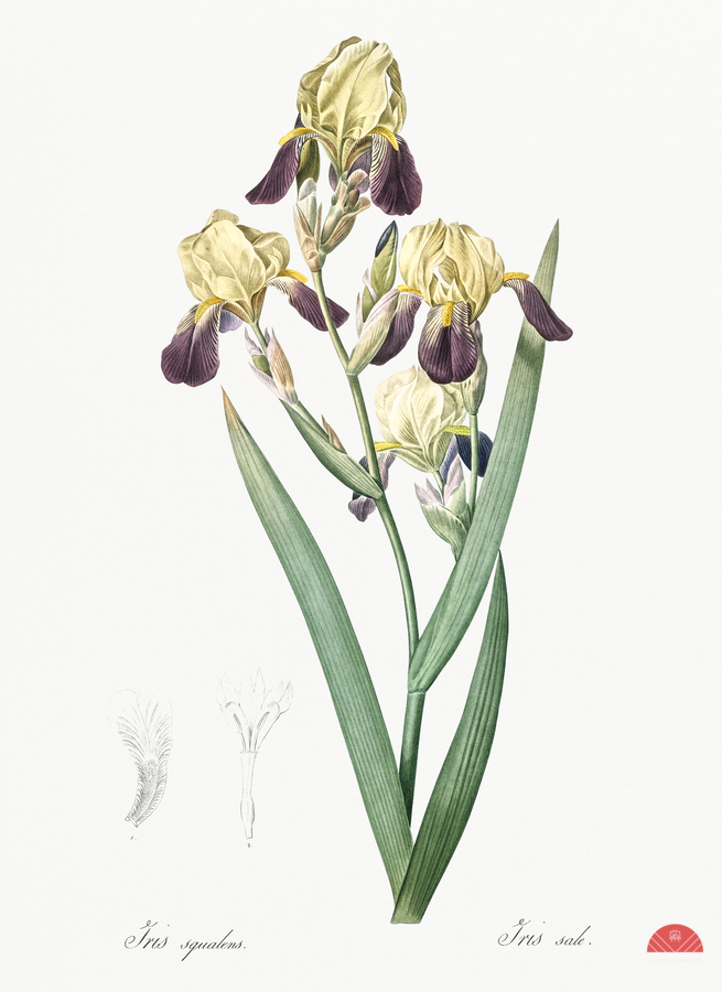 Elder scented iris illustration from Les liliacées 1805 by Pierre Joseph Redouté 1759-1840.