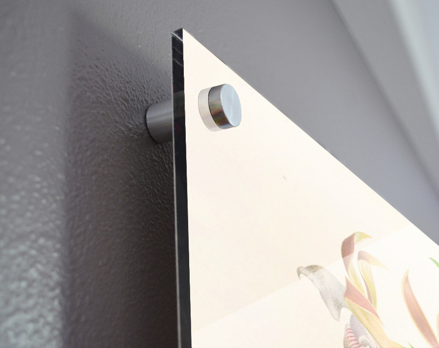 Impression sur acrylique avec entretoises ( cylindres métalliques )
