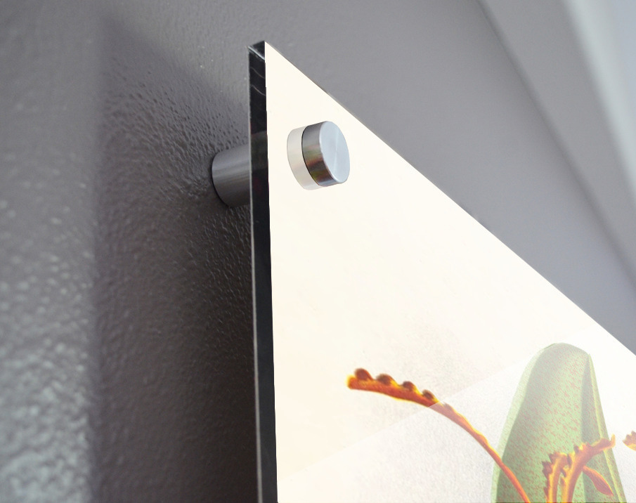 Impression sur acrylique avec entretoises ( cylindres métalliques )
