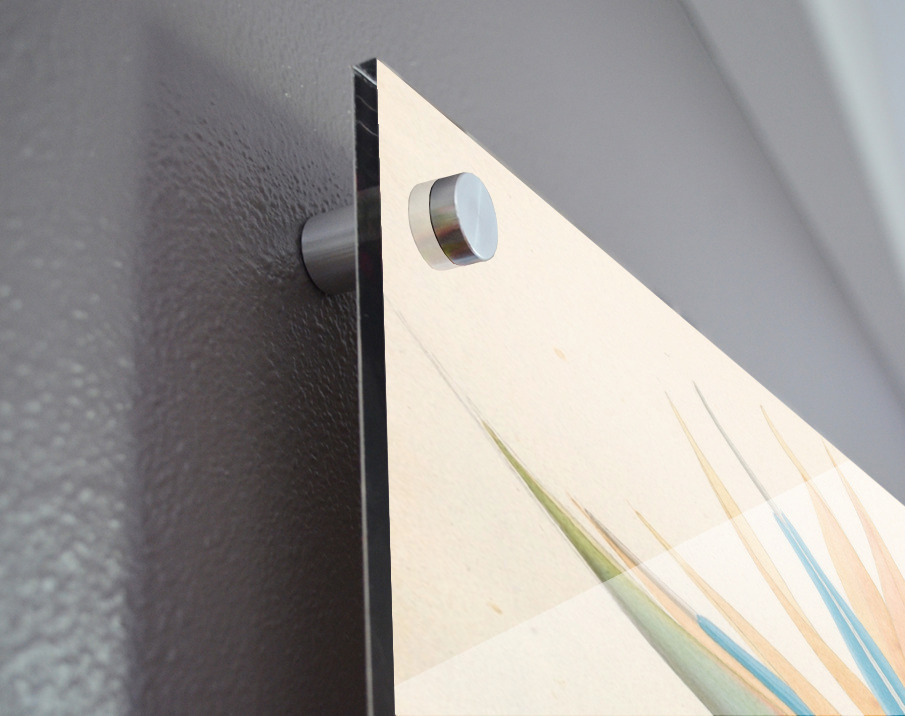 Impression sur acrylique avec entretoises ( cylindres métalliques )