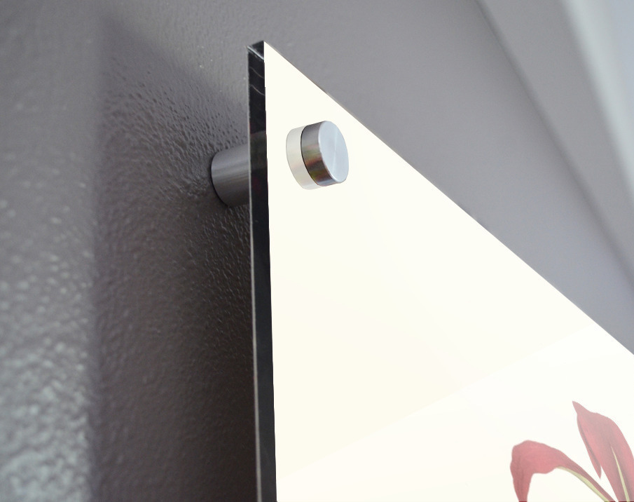 Impression sur acrylique avec entretoises ( cylindres métalliques )