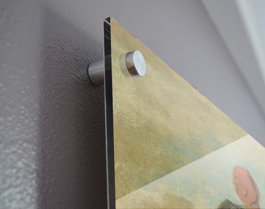 Impression sur acrylique avec entretoises ( cylindres métalliques )