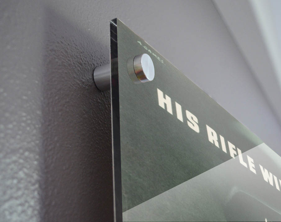 Impression sur acrylique avec entretoises ( cylindres métalliques )