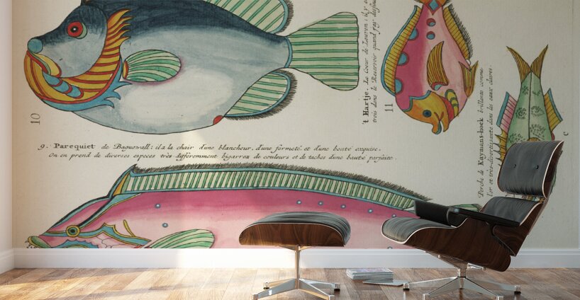 SUR CETTE OEUVRE: COLOURFUL AND SURREAL ILLUSTRATIONS OF FISHES FOUND IN MOLUCCAS INDONESIA AND THE EAST INDIES BY LOUIS RENARD 1678 -1746 FROM HISTOIRE NATURELLE DES PLUS RARES CURIOSITEZ DE LA MER DES INDES 1754.