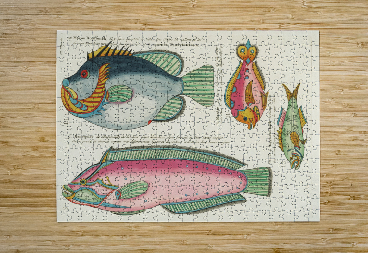 Colourful and surreal illustrations of fishes found in Moluccas Indonesia and the East Indies by Louis Renard 1678 -1746 from Histoire naturelle des plus rares curiositez de la mer des Indes 1754. IStockHistory com Puzzle