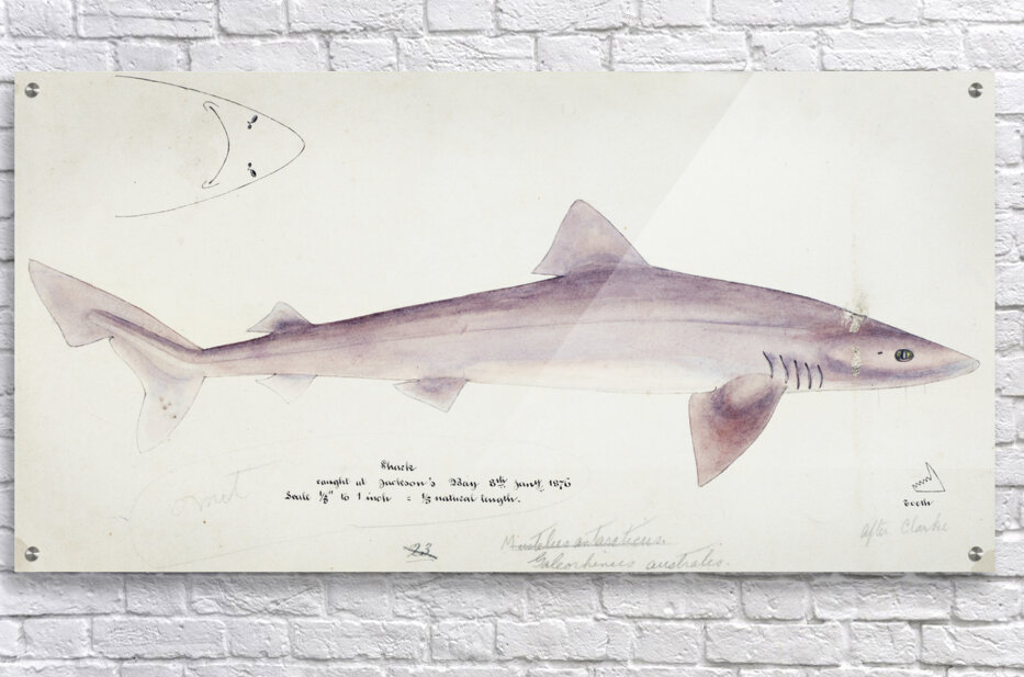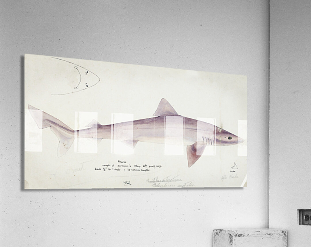 Antique fish myxus elongatus sand mullet South Pacific Fishes by Frank Edward Clarke 1849-1899.   Impression métal HD avec cadre flottant sur le dos