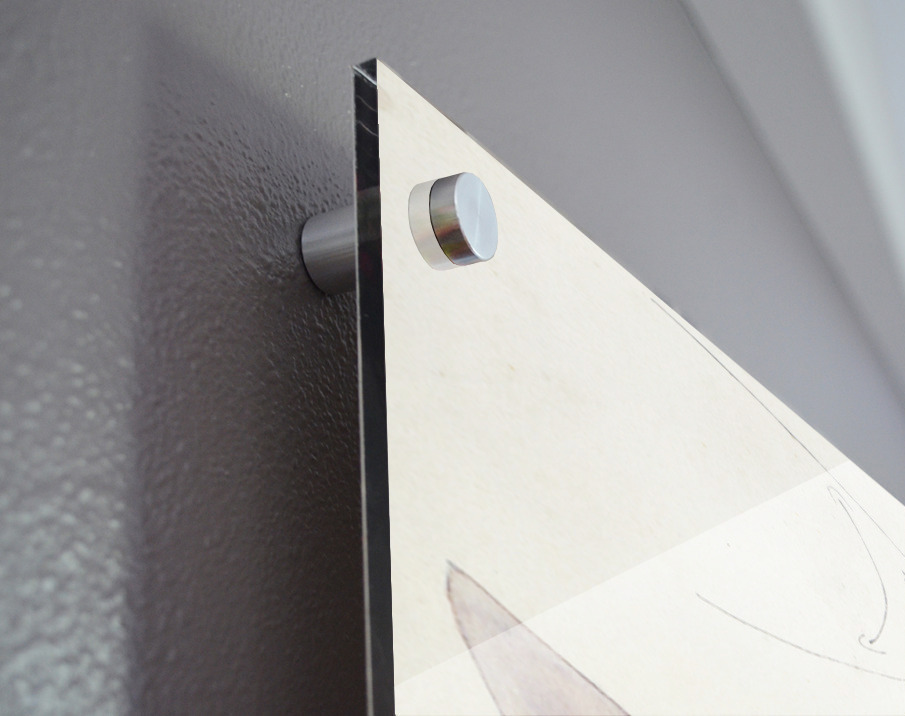Impression sur acrylique avec entretoises ( cylindres métalliques )