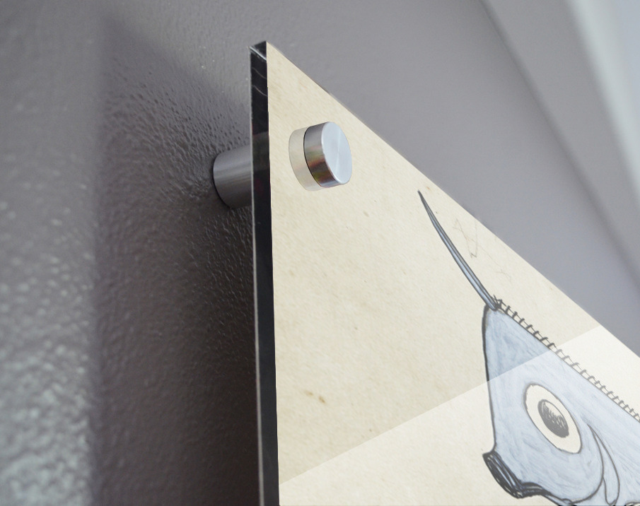 Impression sur acrylique avec entretoises ( cylindres métalliques )