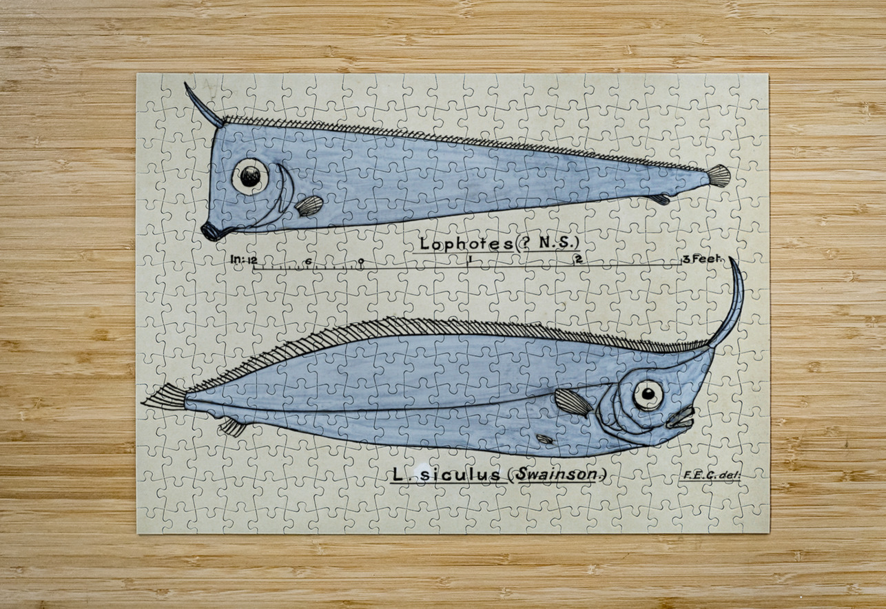 Antique fish Crested Bandfish South Pacific Fishes by Frank Edward Clarke 1849-1899.  IStockHistory com Impression de puzzle