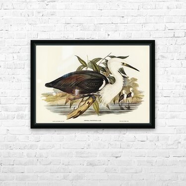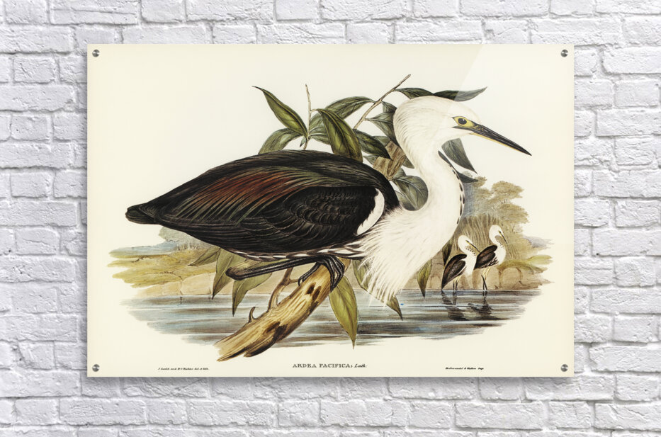 Pacific Heron Ardea pacifica illustrated by Elizabeth Gould 1804–1841 for John Gould’s 1804-1881 Birds of Australia  Impression du cadre