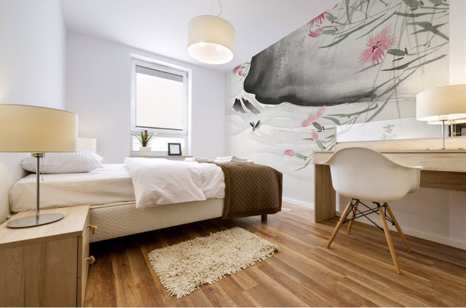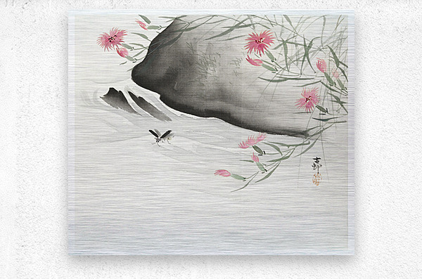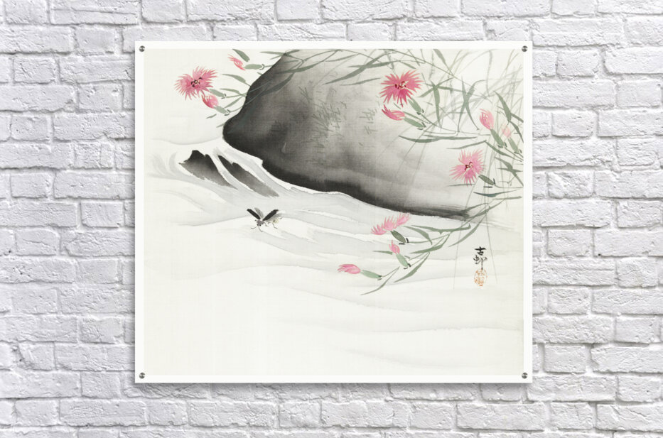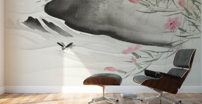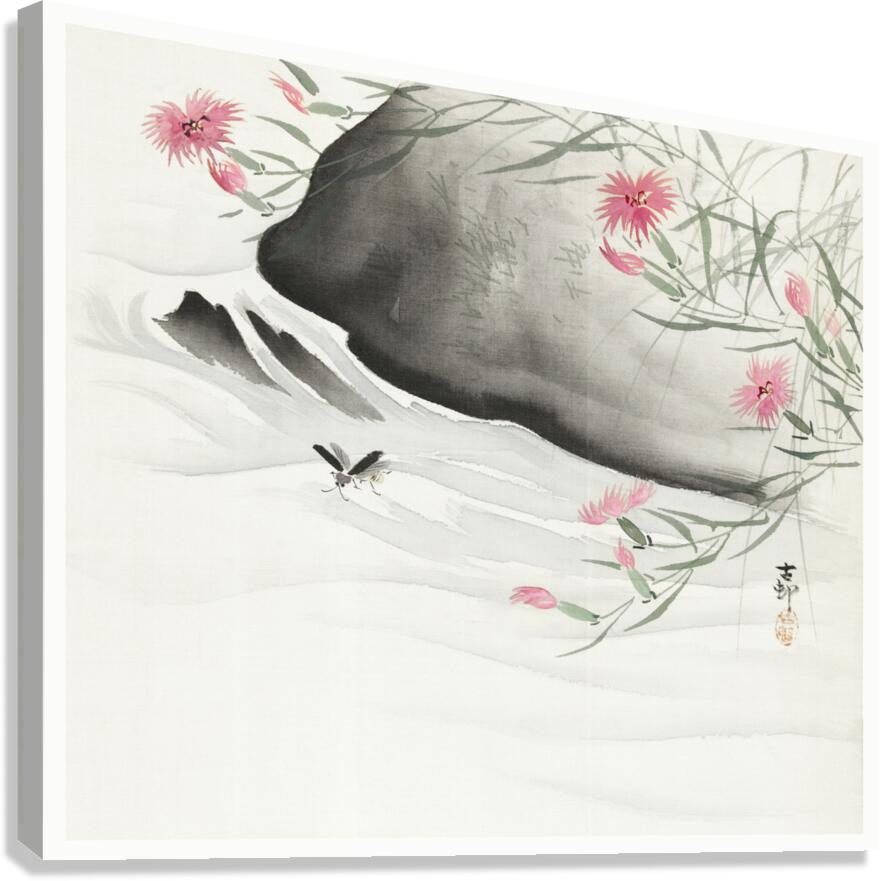 Plants with pink flowers by the river 1877-1945 by Ohara Koson 1877-1945. Impression sur toile