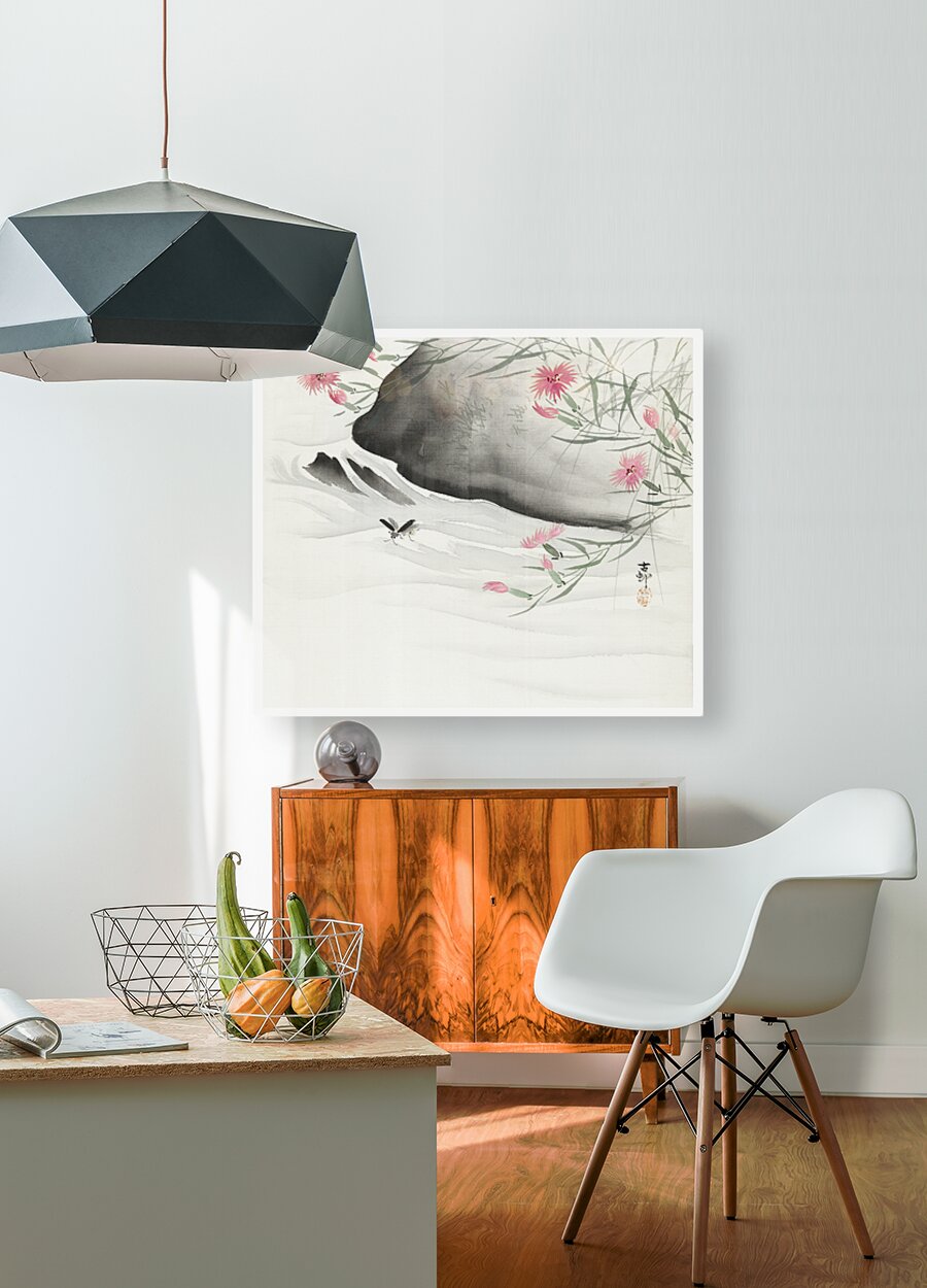 Plants with pink flowers by the river 1877-1945 by Ohara Koson 1877-1945. Cadre photo